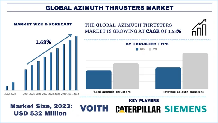 According to recent research from UnivDatos, the global azimuth thrusters market was valued at approximately USD 532 million in 2023 and is projected to grow at a CAGR of 1.63% between 2024 and 2032, propelled by expanding offshore activities, digital integration, and decarbonization trends.