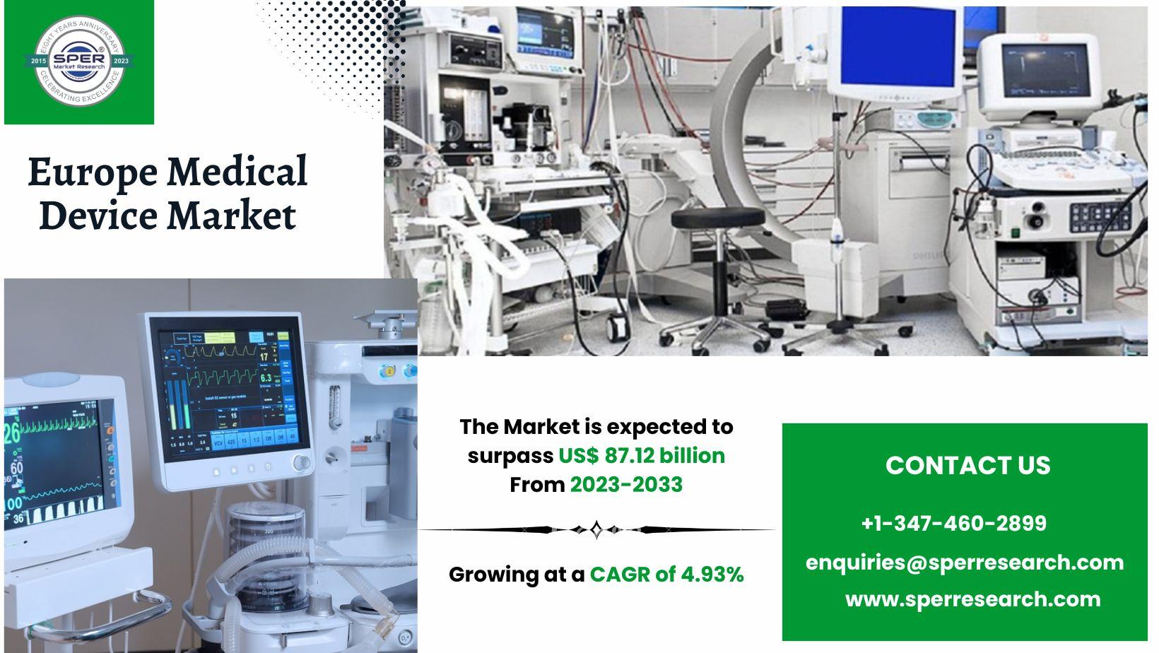 According to SPER market research, ‘Europe Medical Device Market Size- By Device Type, By End User- Regional Outlook, Competitive Strategies and Segment Forecast to 2032’ state that the Europe Medical Device Market is predicted to reach 87.12 billion by 2032 with a CAGR of 4.93%.