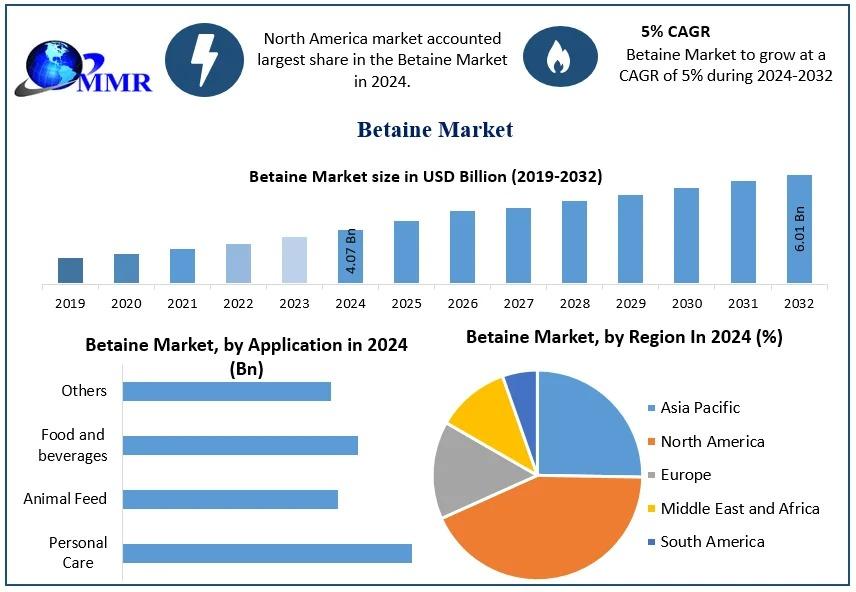 The Betaine Market size was valued at USD 4.07 Billion in 2024 and total Betaine Market revenue is expected to grow at a CAGR of 5% from 2025 to 2032, reaching nearly USD 6.01 Billion.