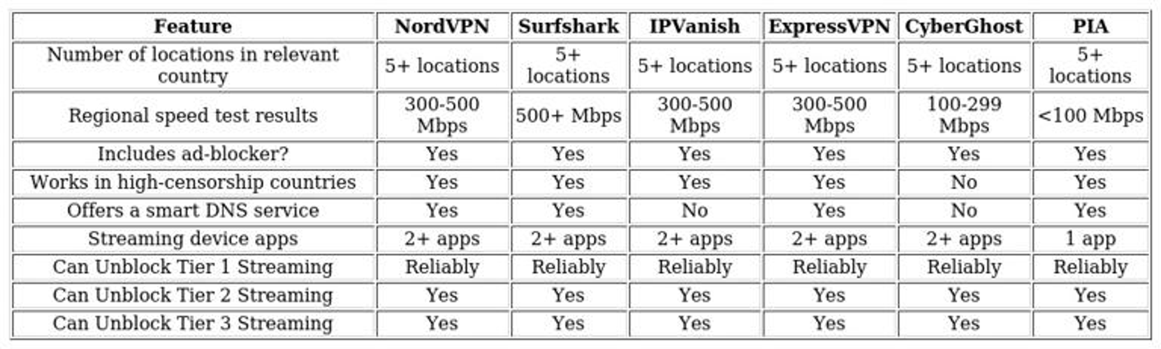 • ExpressVPN — fast global servers that deliver high-quality streams, excellent at unblocking services, and industry-leading privacy features.