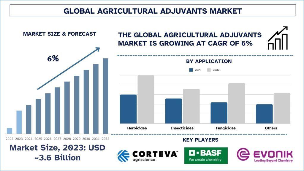 The Agricultural Adjuvants Market was valued at approximately USD 3.6 Billion in 2023 and is expected to grow at a substantial CAGR of around 6% during the forecast period (2024-2032)